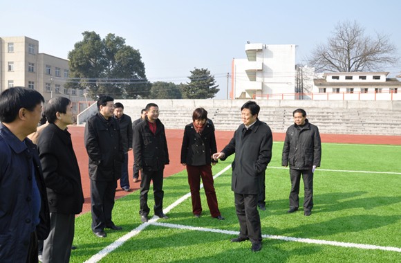 12月23日上午,蕪湖市委常委、組織部長胡邦明在南陵縣委書記、縣人大常委會主任鳳劍峰,縣委常委、組織部長夏冰馨,家發鎮黨委書記劉敏等同志的陪同下到南陵縣家發中學檢查工作,并視察了由我公司承建的家發中學運動場工程。