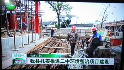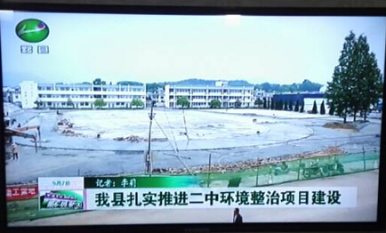 近日黟縣電視臺在“我縣扎實推進二中環境整治項目建設”報道中,大篇幅的報道了,我公司承建的黟縣二中主席臺及運動場地改造工程,并配發了相關現場施工圖片,圖片中安全防護到位,現場材料分類堆放整齊,施工組織井然有序,大家干勁十足。