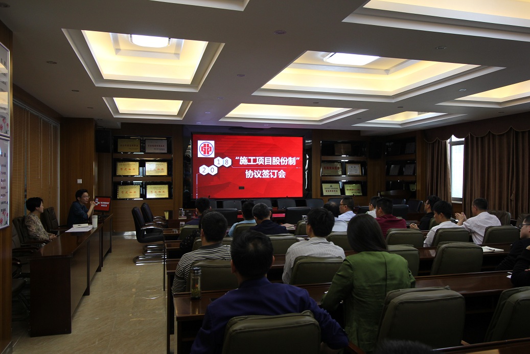 4月20日下午,在集團公司5樓會議室舉行了“施工項目股份制”協議簽訂會。會議由項目投資運營中心總經理周躍主持,集團相關領導和全體股份制項目股東參會。