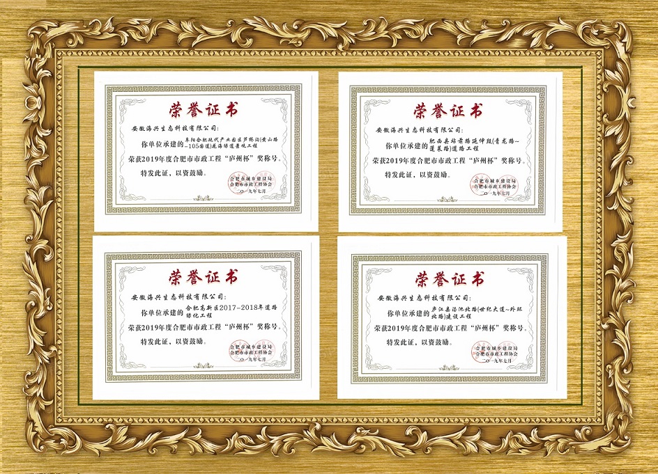 近日,由我公司承建的集賢路(繁華大道-方興大道)工程(總造價11730萬元)、國際大道二標(玉蘭大道-三河路)工程(總造價8200萬元)、肥西縣站前路延伸段(青龍潭路-蓬萊路)道路工程(總造價3600萬元)、廬江縣湯池北路(世紀大道-外環北路)建設工程(總造價1600萬元)四個項目喜獲2019年度合肥市市政工程“廬州杯”獎稱號。“廬州杯”獎是合肥市市政工程質量最高獎項,該獎由合肥市市政工程協會每年組織一次評選,評選原則是好中選優、優中選精,獲獎工程的質量和技術水平均應達到省(市)內領先水平。