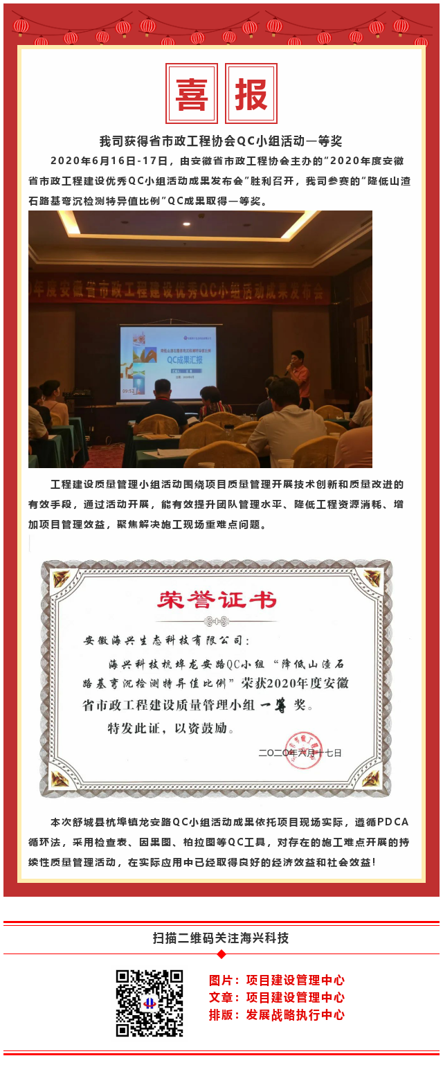 賀我司獲得省市政工程協會QC小組活動一等獎