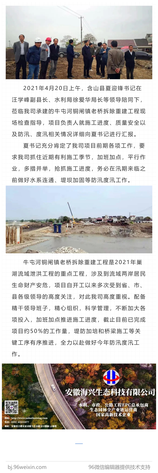 夏迎鋒書記等領導蒞臨我司含山水利項目檢查指導