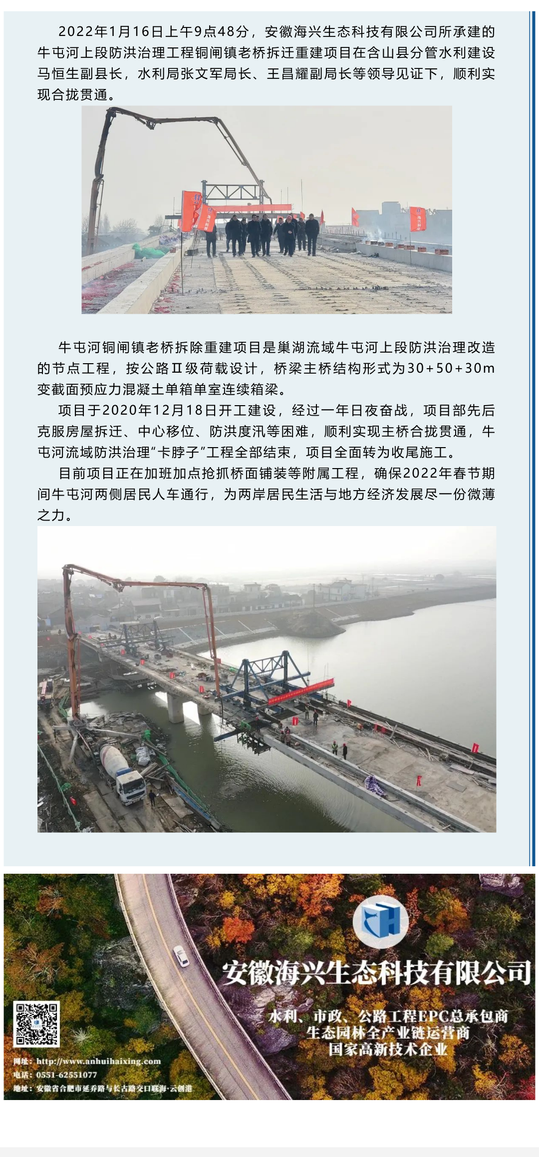 熱烈祝賀銅閘鎮牛屯河大橋主橋順利合攏貫通