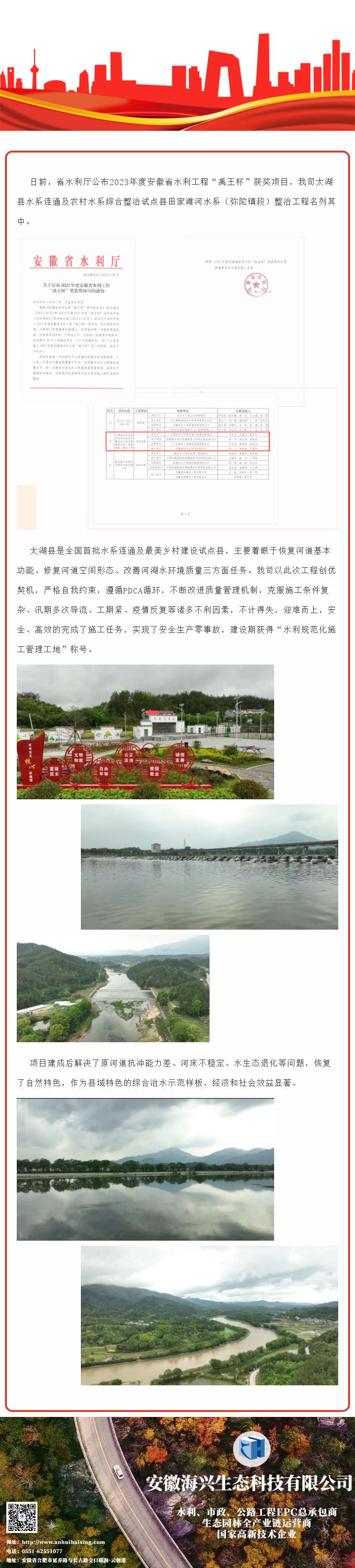 我司太湖水系連通項(xiàng)目喜獲“禹王杯”獎(jiǎng)